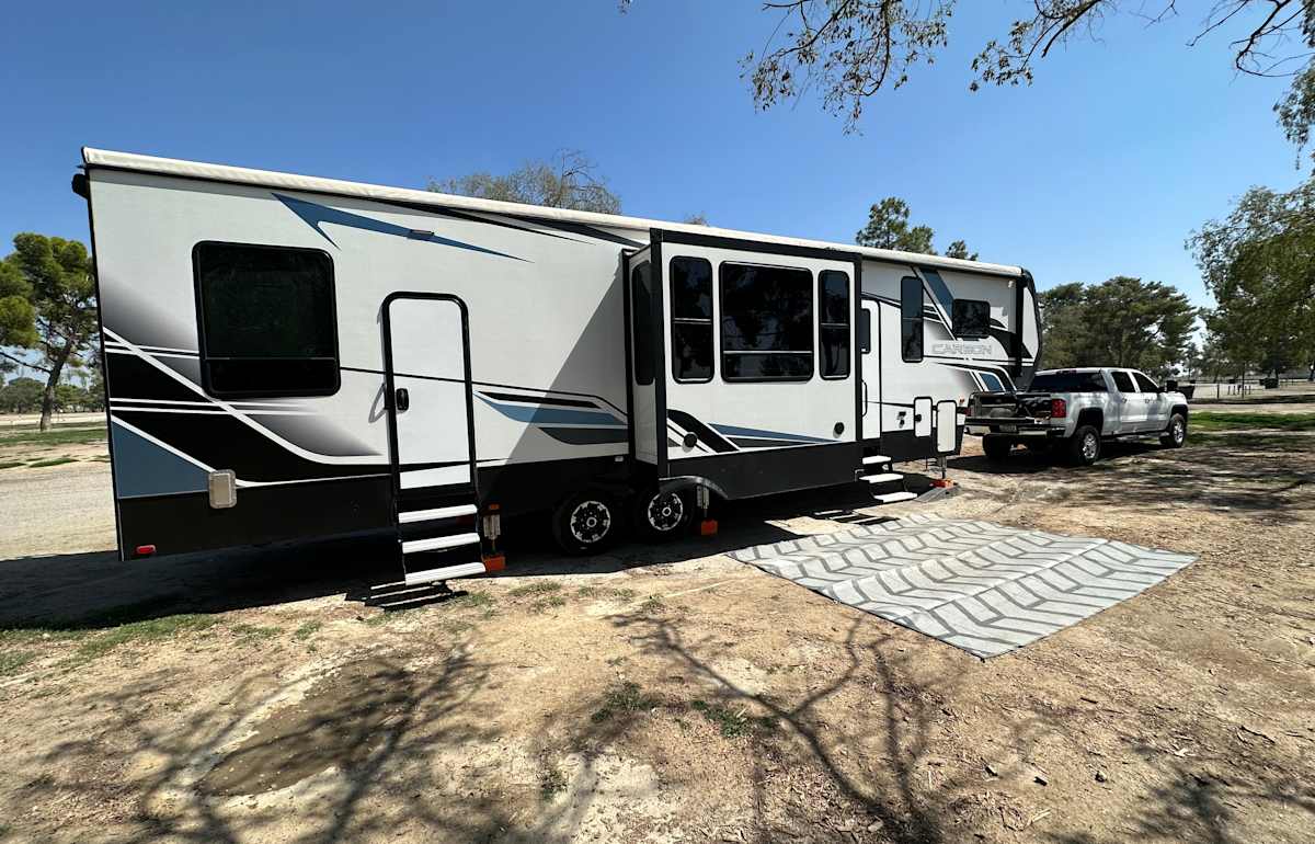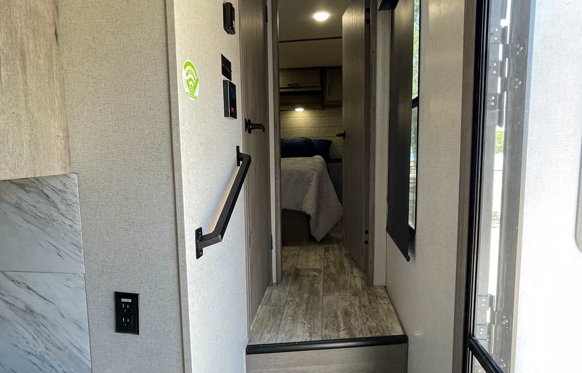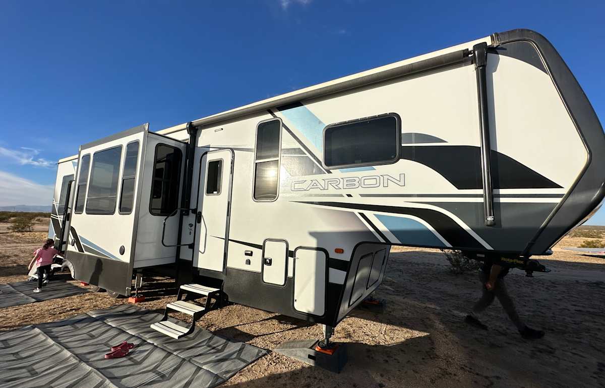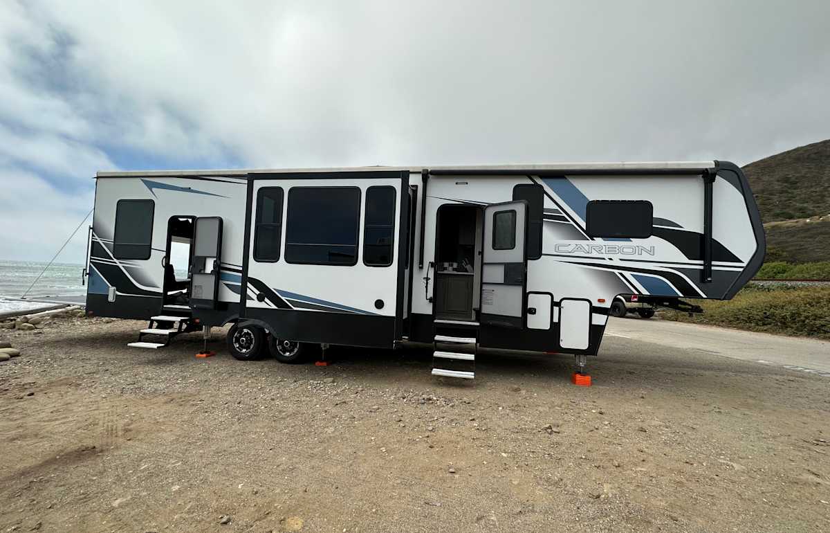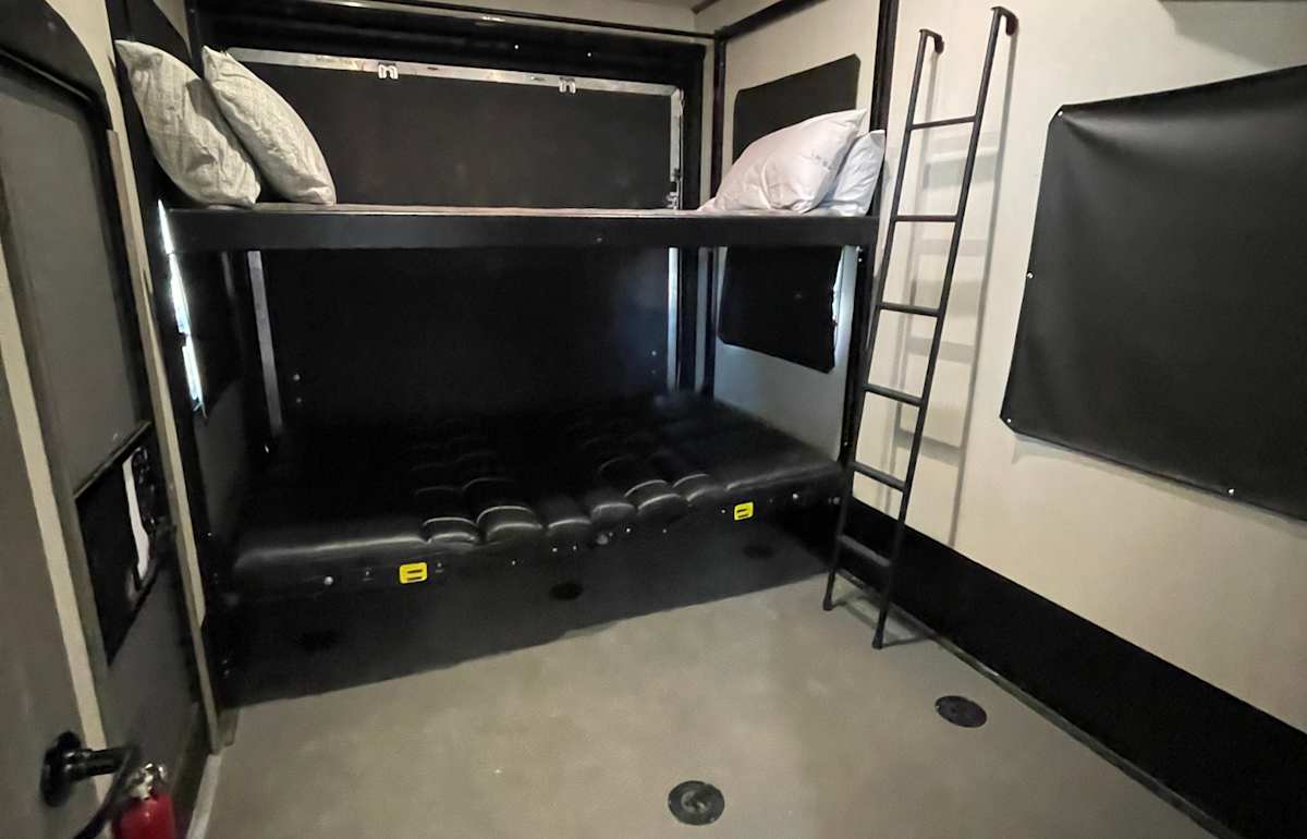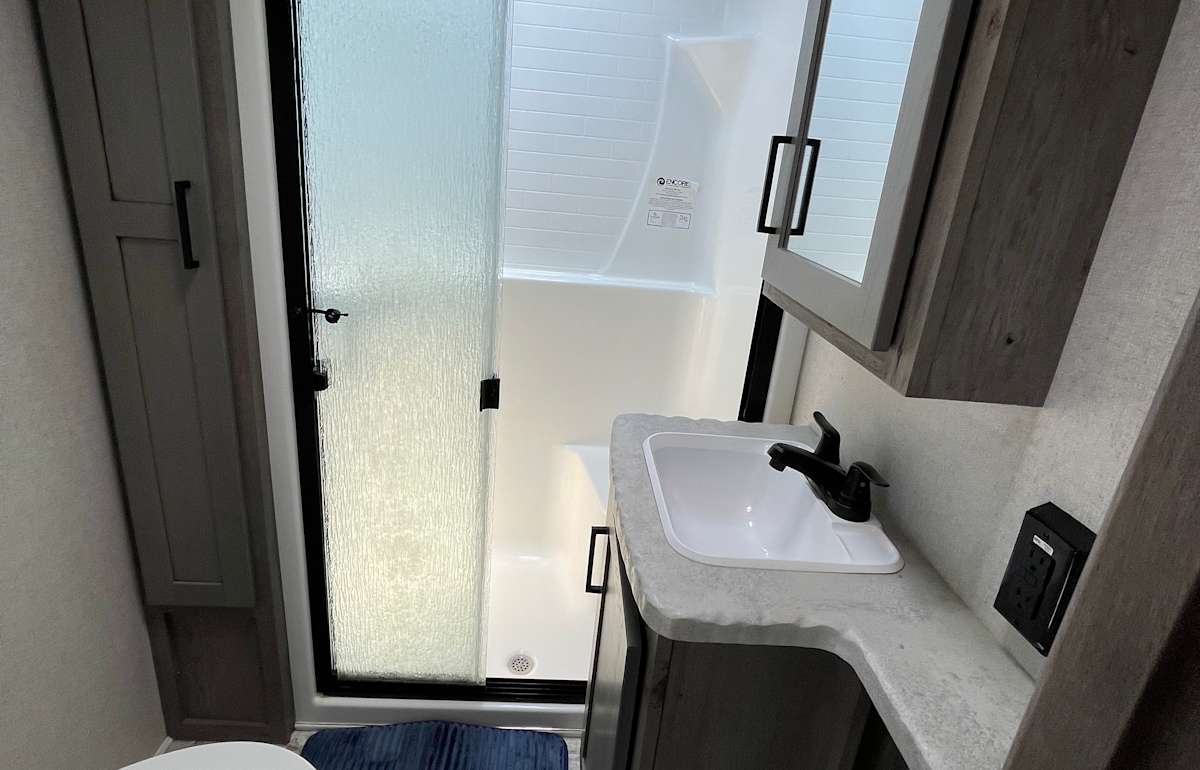 The Carbon is perfect for making lifelong family memories! It has plenty of room to sleep 8+ people. The master room has a queen size bed that was recently upgraded. The master bathroom is very spacious with a walk in shower and plenty of storage space. There are two queen bunk beds and a half bath in the back room. There is a large couch in the living area that pulls out into a bed and there is a twin bed in the loft. The kitchen has a fridge and a large farmhouse style sink that has a top cover for additional counter space to utilize as well as a large pantry.